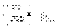 Question 12. With this Zener diode in its "on state," what is the level of IZ for the maximum load resistance?